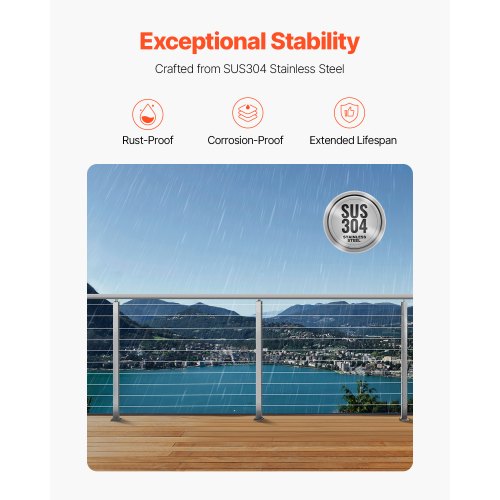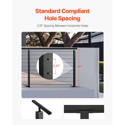 VEVOR Cable Support Post, 36" Height, 2" Width, Steel Construction, No Pre-drilled Holes, Made of Durable SUS304 Stainless Steel, Includes Horizontal and Curved Brackets for Deck and Stair Handrail