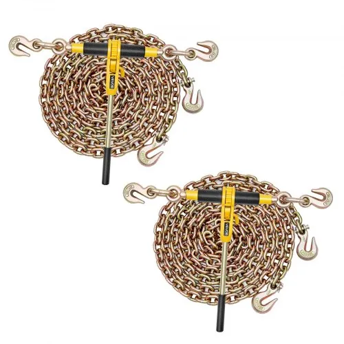 VEVOR Ratchet Chain Binder, 3/8 in x 20 ft G80 Chains, 9200 lbs Working Load of Ratchet Load Binder, Chains and Binders Set, Tie Down Hauling Chain Binders for Hauling, Towing, Logging, Lifting