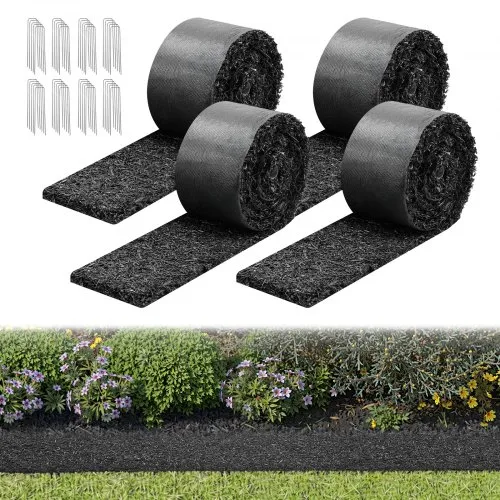 VEVOR Rubber Mulch for Landscaping, 4 Rolls Recycled Rubber Mulch Mat 120 x 4.5 in, Permanent Rubber Pathway, Natural-Looking Black Mulch Garden Edging for Plants, Vegetables & Flower Garden Barrier