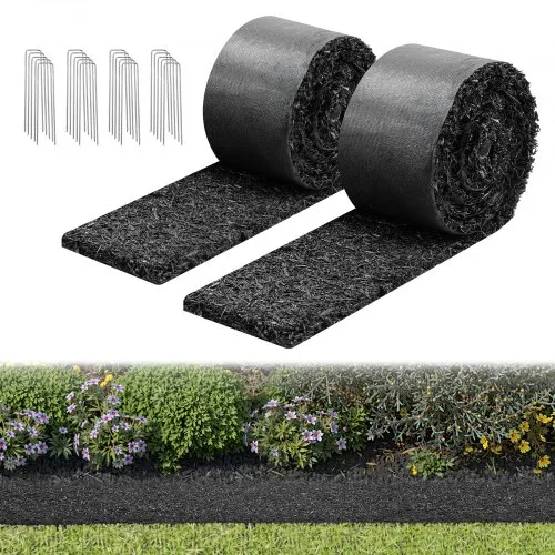 VEVOR Rubber Mulch for Landscaping, 2 Rolls Recycled Rubber Mulch Mat 120 x 4.5 in, Permanent Rubber Pathway, Natural-Looking Black Mulch Garden Edging for Plants, Vegetables & Flower Garden Barrier