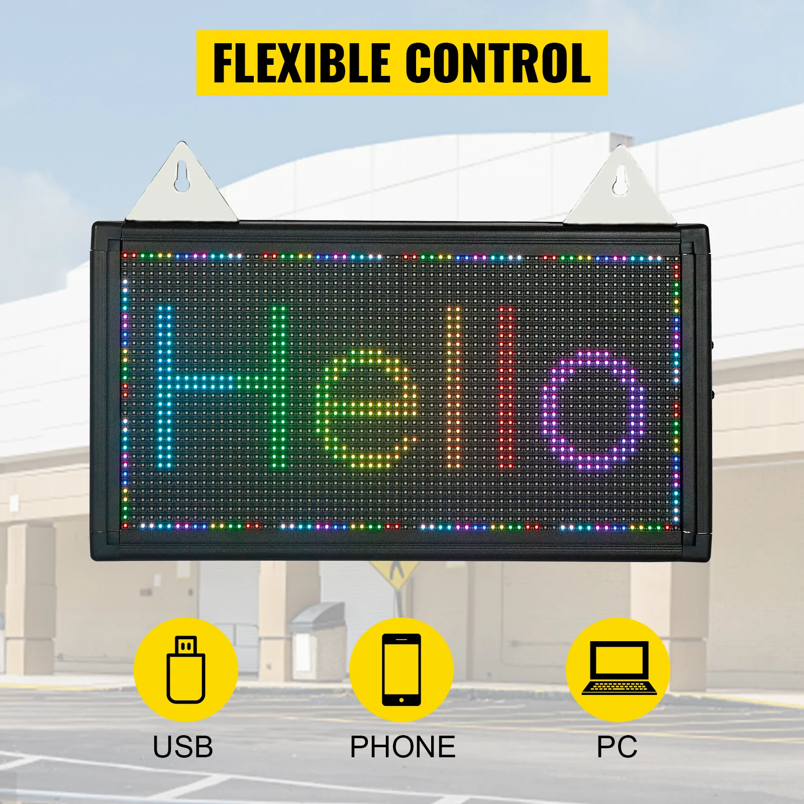 This scrolling LED message sign has multiple ways to display content. The software supports Windows operating systems only, unavailable for Mac. You can change the content through USB or phone (Android and iOS).