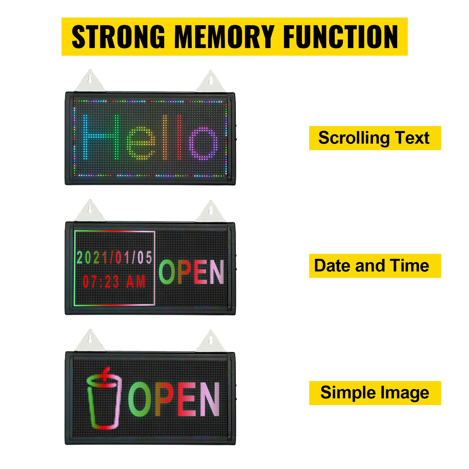The Wi-Fi LED sign can display text, time, and company logos. Up to 100 messages and logos are supported. Thanks to a powerful memory function, you don’t need to worry about losing your messages even when the power is off.