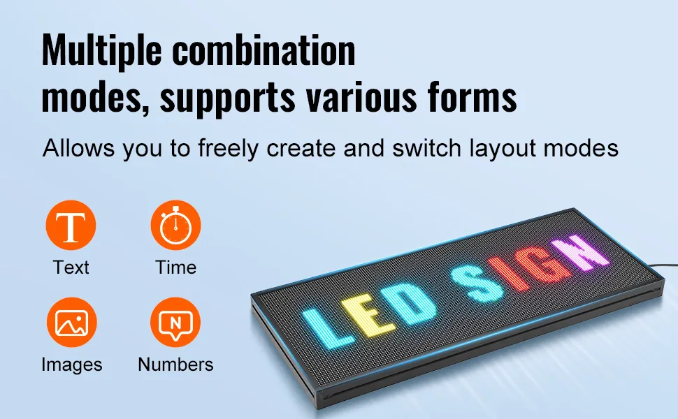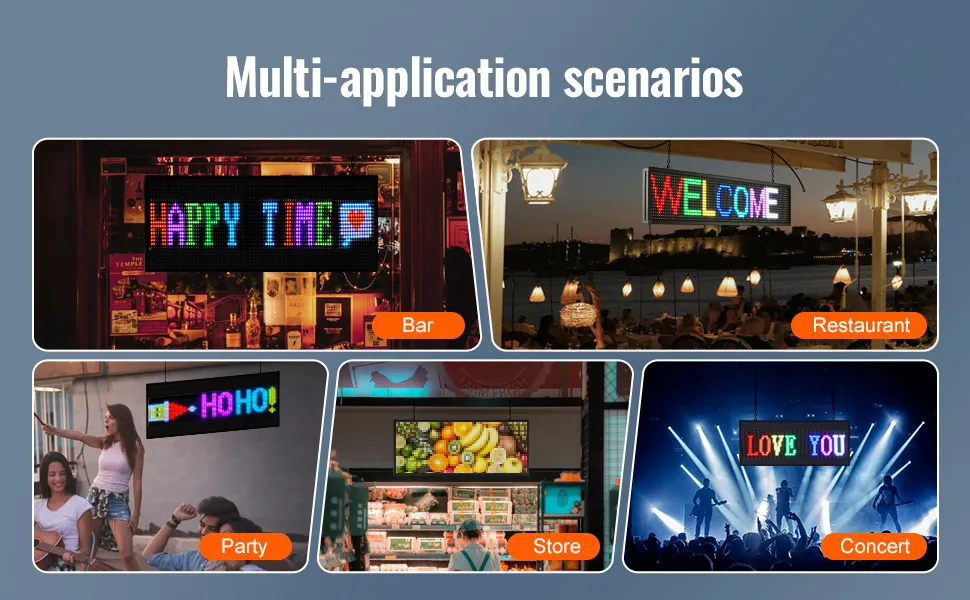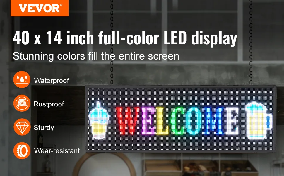 The VEVOR programmable LED sign offers a bright, customizable display perfect for any venue. It can be seen from varying distances, making it highly effective for advertising. The vibrant colors and dynamic animations of this sign aim to draw attention. It fits well in shops, bars, and events. The sign, which is 39 inches wide, is both visible and impactful. With its simple programming, you can change messages and animation quickly. These features make it easy to keep your display fresh and engaging. The sign's brightness makes it suitable for both day and night use. We recommend this sign because its distinguishing features make it highly effective.