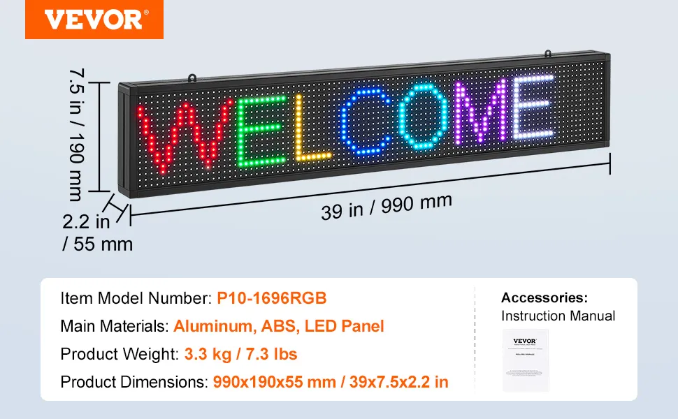 The sign's construction is made from durable materials such as aluminum and ABs. It is lightweight, making it easy to install. You can mount it on walls or place it on a stand. The light weight does not compromise its strength. The VEVOR programmable LED sign can withstand daily use and occasional bumps. Materials are designed to last. Therefore, this makes it a dependable choice for long-term use. The construction ensures the sign stays functional for years. If needed for different locations, you can easily move it.