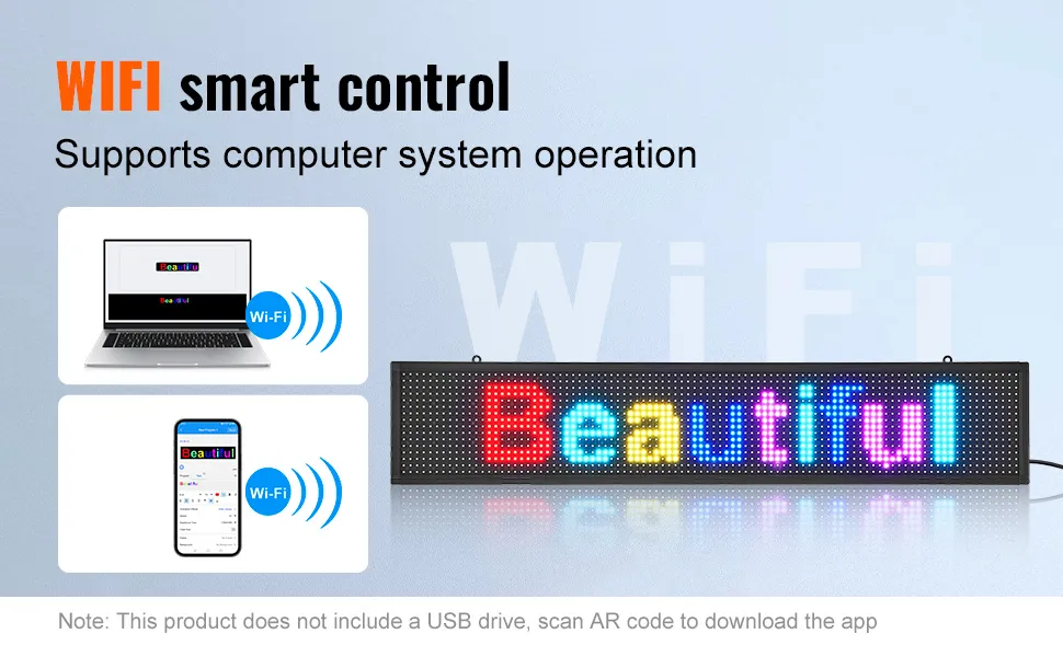 The VEVOR programmable LED sign is easy to program with WIFI and USB options. You can control it from your mobile device or computer. This makes updating messages quick and convenient. There is no need for complex software or tools. Changes can be made in seconds. The sign app is user-friendly and straightforward. It allows you to program messages, animations, and effects. Hence, this feature saves time and effort. With an internet connection, you can update your sign without any complicated software. No need for complex programs or devices; this ensures fast and easy message updates.