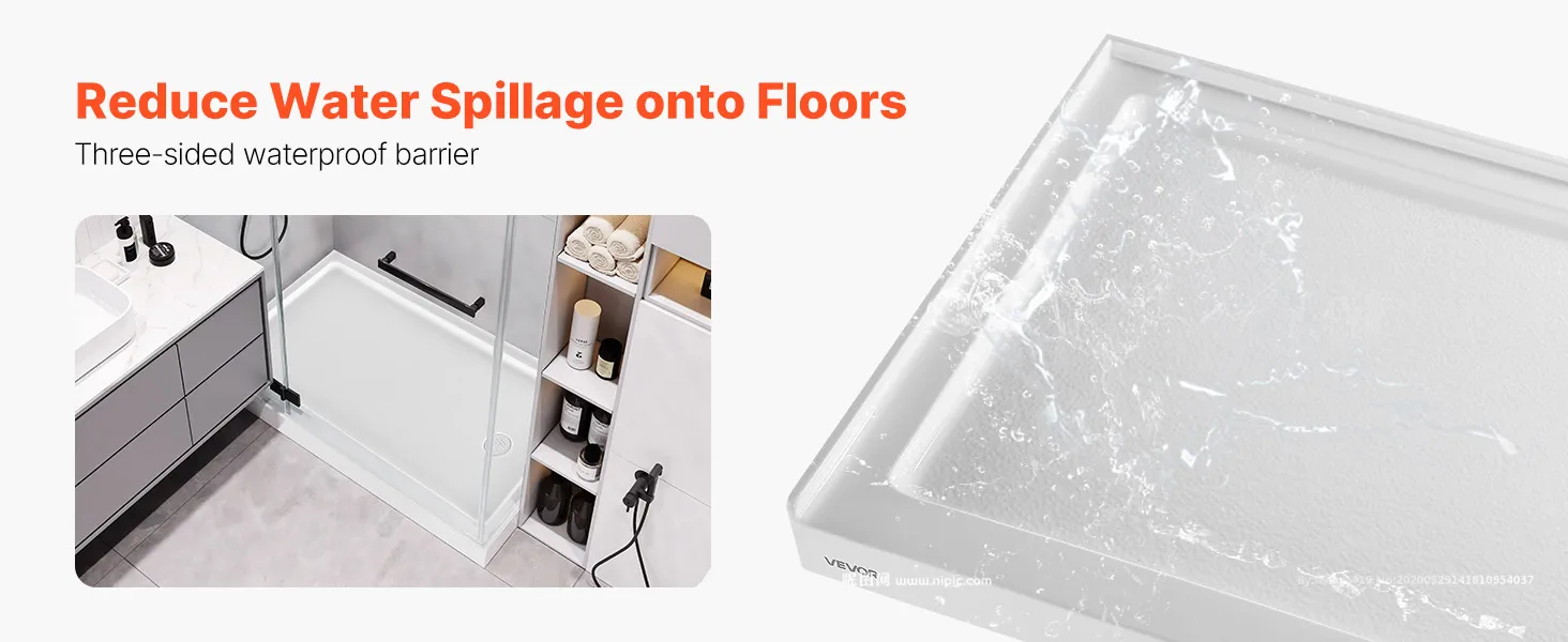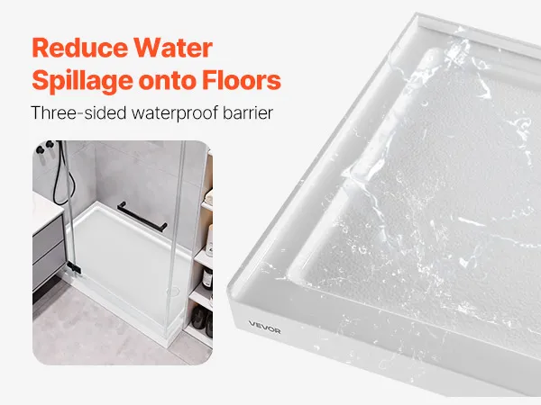 Featuring three elevated edges, this single threshold shower base is thoughtfully designed to reduce splash over and keep your floor cleaner. No more puddles on the floor. Save time, skip the mop, and enjoy a cleaner, drier bathroom.