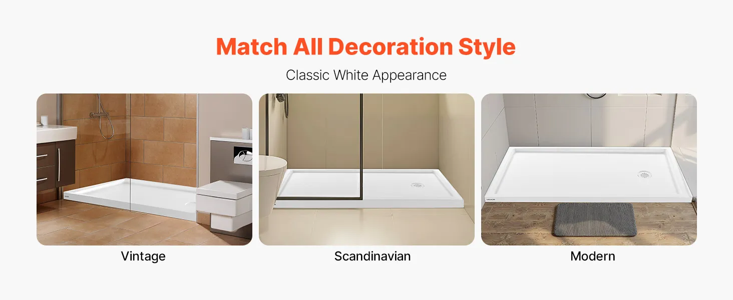 Whether your space is modern, Nordic, or mid-century, the VEVOR shower basin's sleek white finish pairs effortlessly. Simple, elegant, and easy to match—no design clashes here.