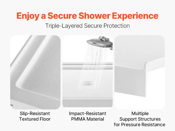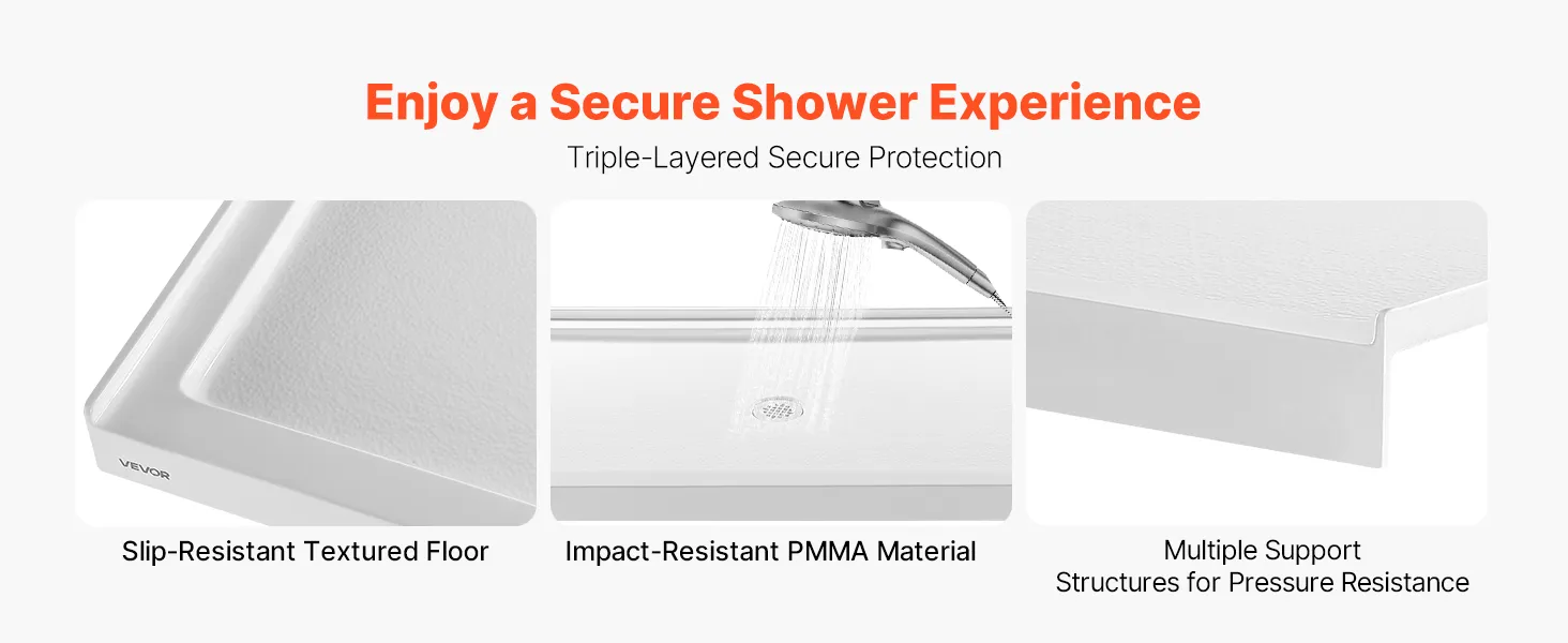 Durable & Crack-Ready Build: Made with durable high-gloss acrylic, this shower pan base features molded construction and bottom support at key points. It holds up under regular foot traffic without deforming and stands strong even during multi-user use