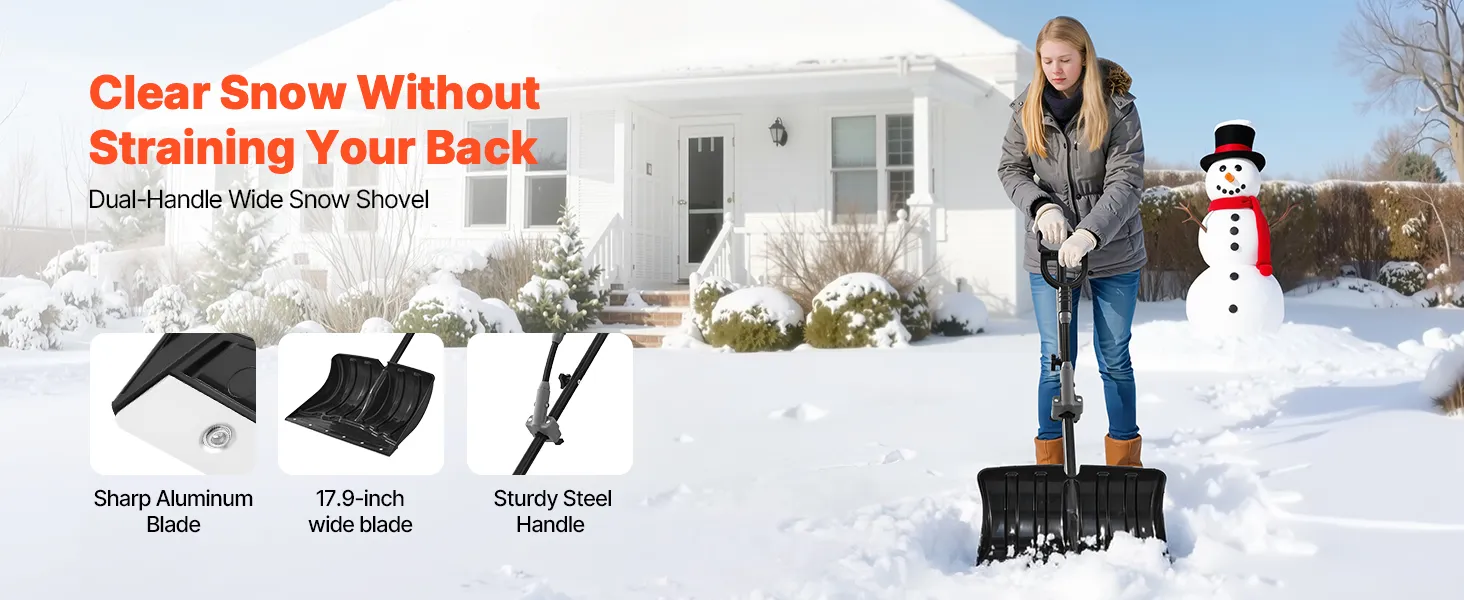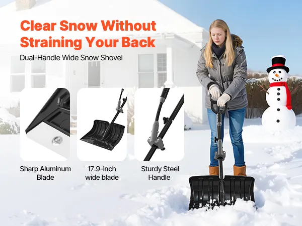 Built with a durable, low-temperature-resistant PP blade and a sharp aluminum edge, the 17.9 in wide snow shovel for driveway clears more snow in one push for fast, efficient results. The sturdy steel handle ensures long-lasting use, making it an ideal winter tool for home snow clearing.
