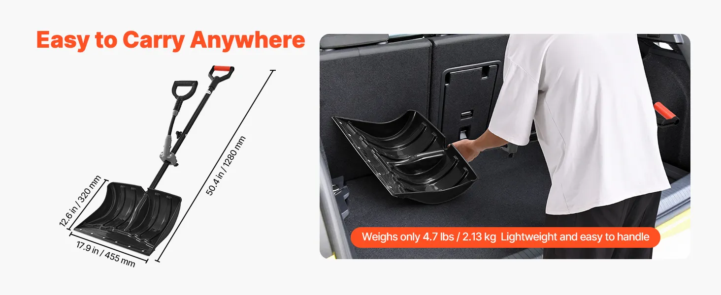 Easy to Assemble & Carry: Comes with a user manual and tools, our lightweight snow shovels allow quick setup with no extras needed. Weighing only 4.7 lbs, it’s lightweight and portable, ideal for camping, travel, or outdoor adventures as an emergency tool