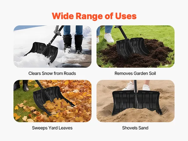 Multi-Scenario Uses: The plastic snow shovel is not only suitable for clearing snow around houses, driveways, and sidewalks, but also for gardening, leaf cleaning, or outdoor sand moving. A practical tool for daily home use or outdoor camping