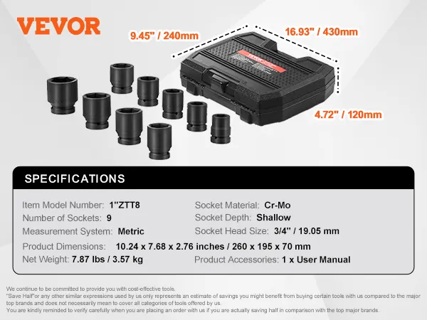 Portable Storage Case: All impact sockets are neatly organized in a sturdy storage case for convenient access and transport. The case is airtight to keep your tools dry and clean, and it includes a handle for easy carrying.