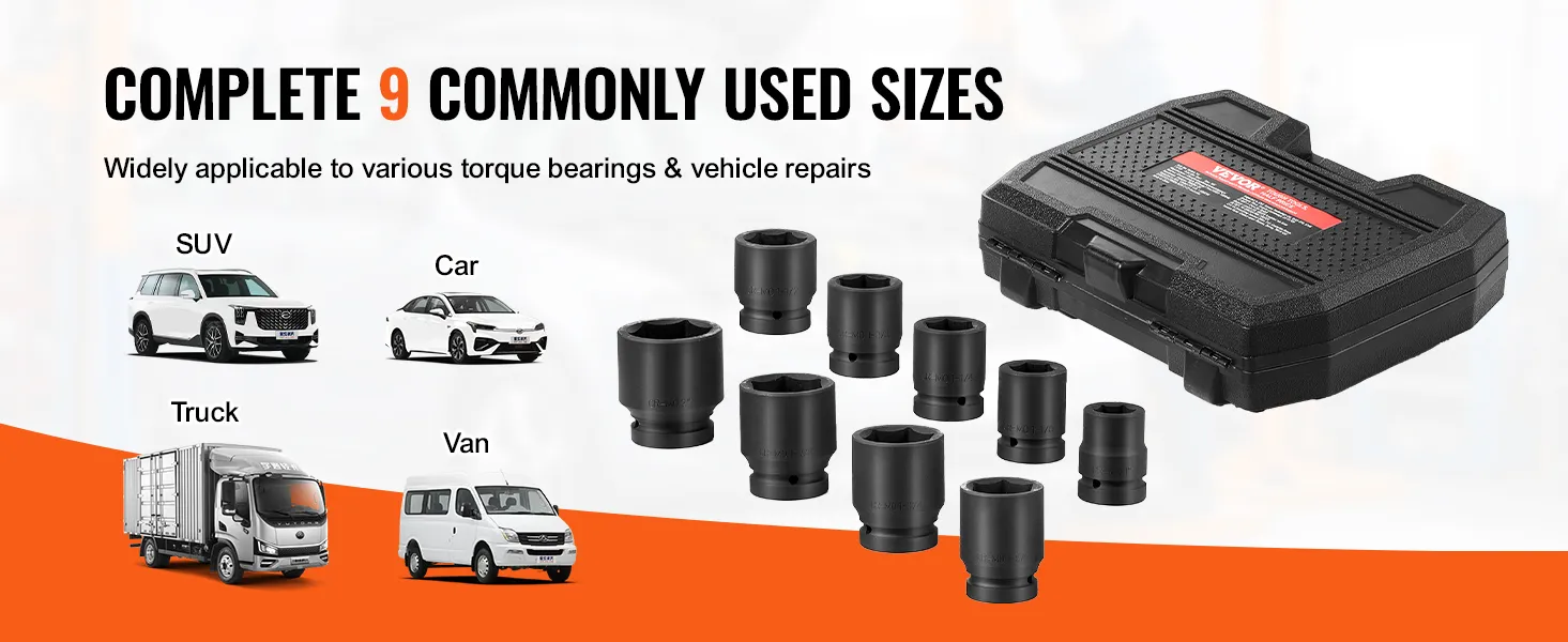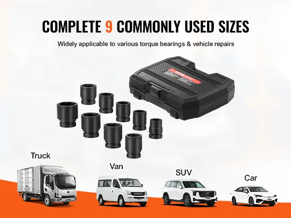 This axle socket set is ideal for vehicle maintenance, including trucks, cars, and SUVs, helping you efficiently replace parts and reduce vehicle breakdowns or safety hazards.