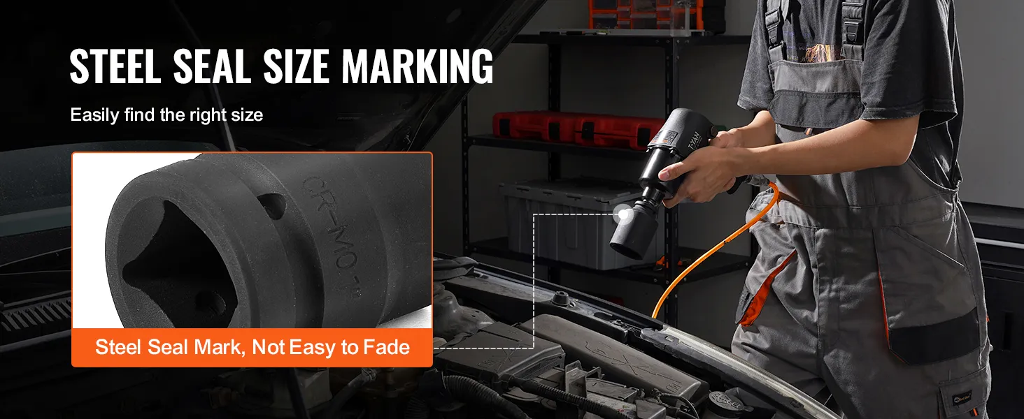 Impact-Resistant & Corrosion-Resistant: Constructed from heat-treated CR-MO steel, the spindle nut socket set can withstand high torque from impact tools. The phosphate finish adds corrosion resistance, and each socket is clearly marked for easy identification.