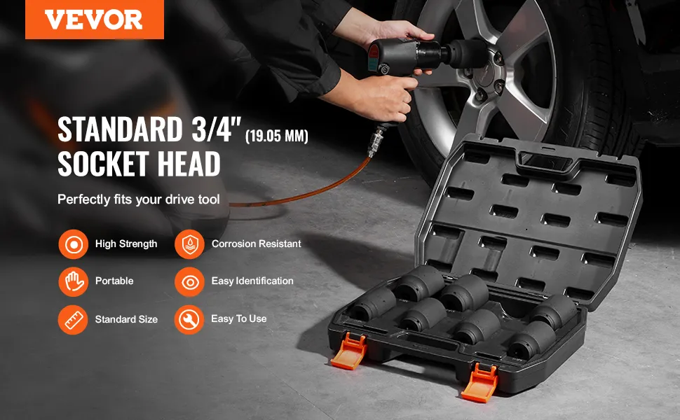 Portable Storage Case: All impact sockets are neatly organized in a sturdy storage case for convenient access and transport. The case is airtight to keep your tools dry and clean, and it includes a handle for easy carrying.