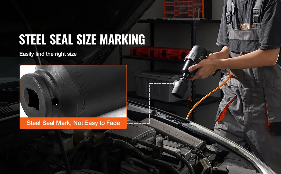 6-Point Socket Design: The 6-point impact socket set grips nuts and bolts securely, preventing slippage. By evenly distributing force across all angles of the fastener, it reduces the risk of damage during use.