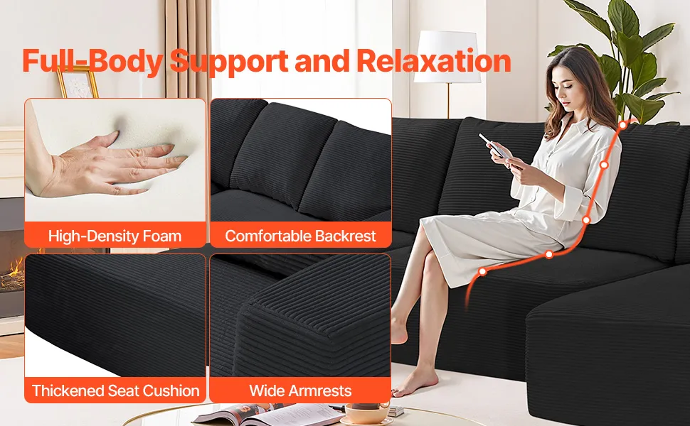 Soft and Comfortable Seating: This modular sectional sofa features high-elastic foam and spring-packed support, offering both a soft, plush feel and long-lasting durability.