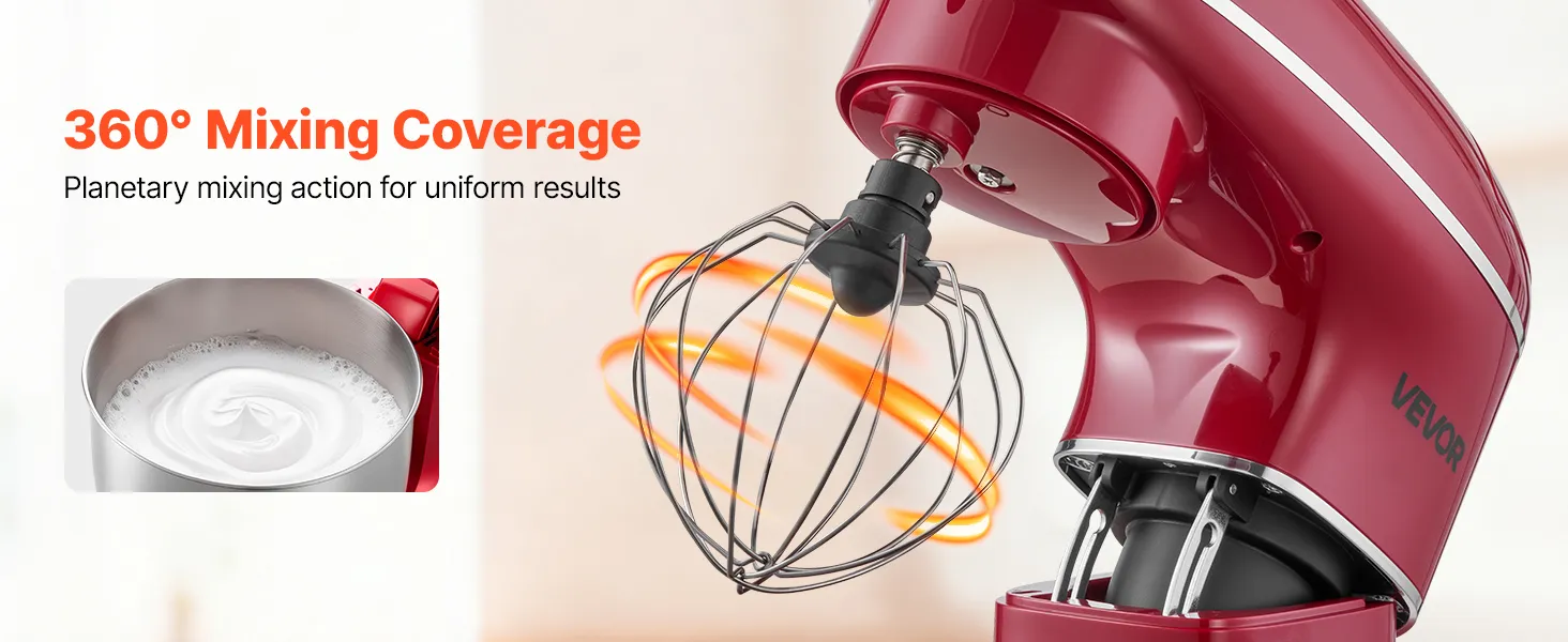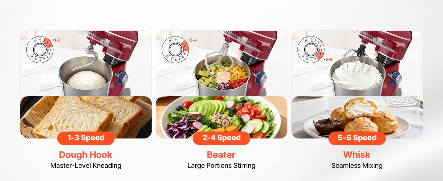 6-Speed Control & Pulse Option: Our electric stand mixer has a 660W powerful motor for quick, even mixing. 6 adjustable speeds and a pulse setting to let you achieve ideal results: 1–3 for dough, 2–4 for fillings, 5-6 for whipping cream. Please stop it before changing speeds