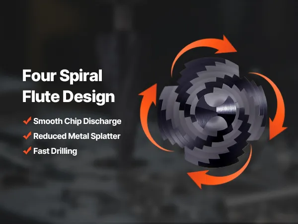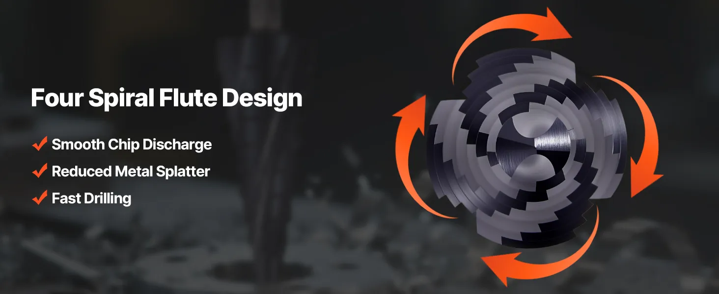 Four spiral flutes speed up chip evacuation for smoother, uninterrupted drilling, especially on hard materials. Our step drill bit for metal helps achieve cleaner, more precise holes.