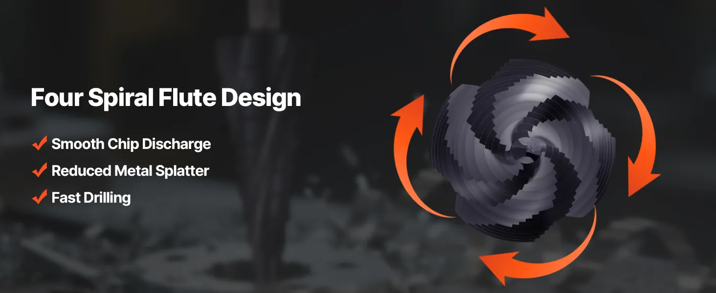 Four spiral flutes speed up chip evacuation for smoother, uninterrupted drilling, especially on hard materials. Our step drill bit for metal helps achieve cleaner, more precise holes.