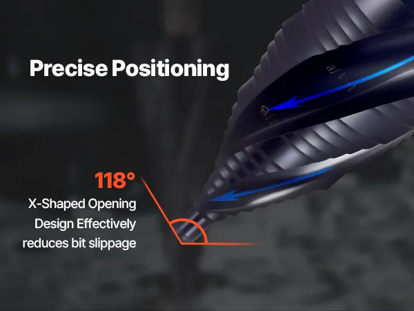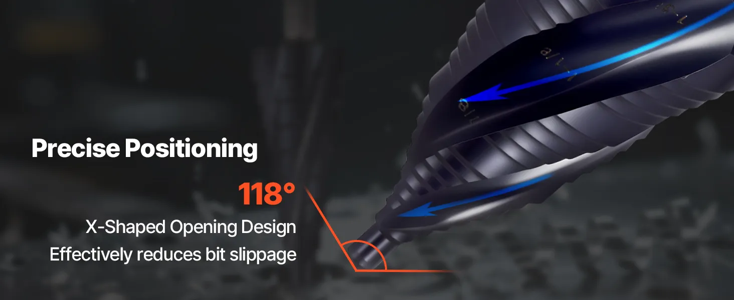 The metal step drill bit for metal features a 118° design to provide accurate positioning and smoother starts. The sharp tip minimizes bit walking, ensuring each hole is drilled exactly where you want it.
