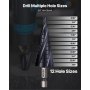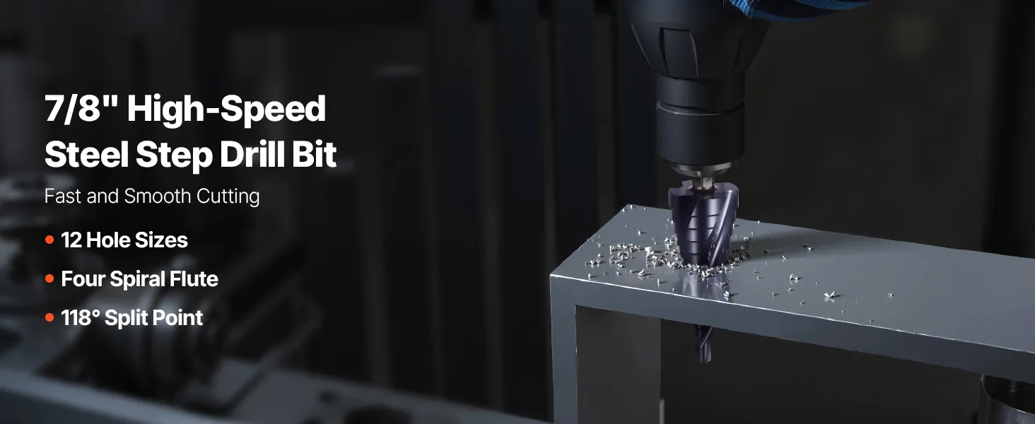 Multi-Size Versatility: This step drill bit includes twelve precise sizes from 3/16 to 7/8 inch (3/16, 1/4, 5/16, 3/8, 7/16, 1/2, 9/16, 5/8, 11/16, 3/4, 13/16, 7/8 inch) for versatile applications