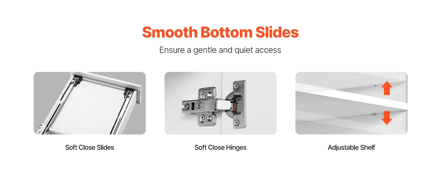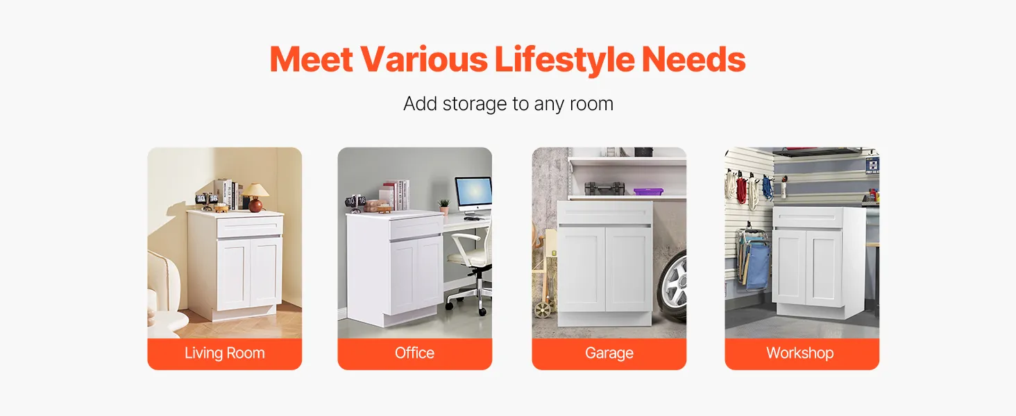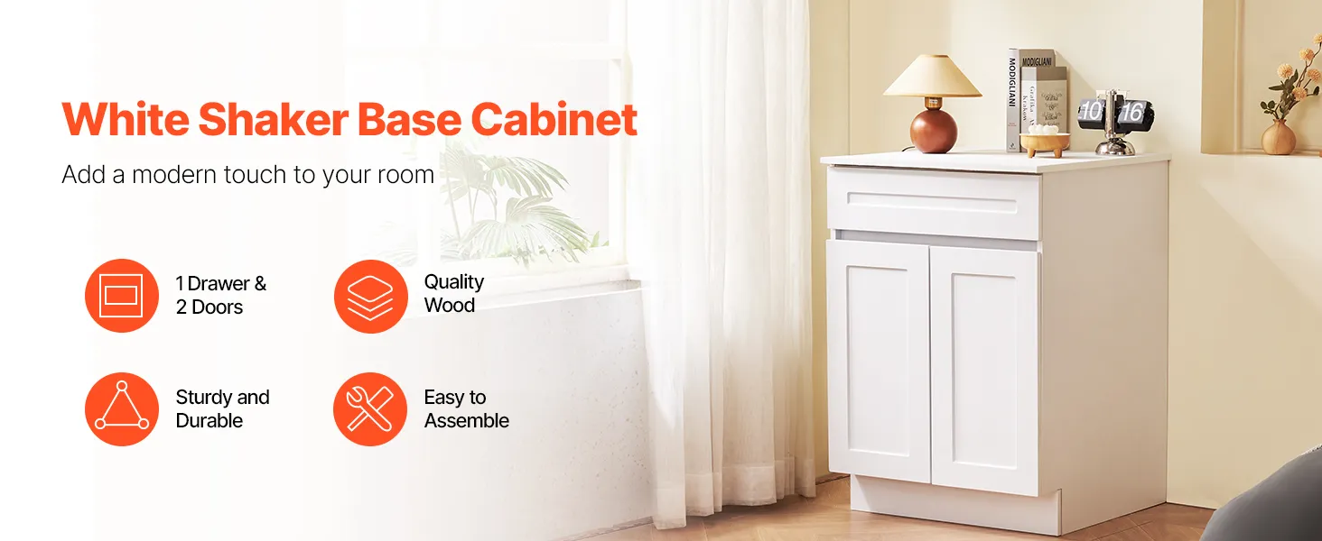 Give your home a fresh look, combined with the organizing benefits courtesy of the VEVOR shaker door cabinet. It comes unassembled and offers you a quick and advanced way to mannequins in your room. The design is strong, smooth, and ready for daily use. This design gives you a soft-close drawer, two doors, and an adjustable shelf. This cabinet can be conveniently placed at home, in the kitchen, and elsewhere. It works well with modern or classic spaces. This cabinet makes your life easier if you want things neat and tidy without complex steps. It blends solid build with a trusted shaker design.