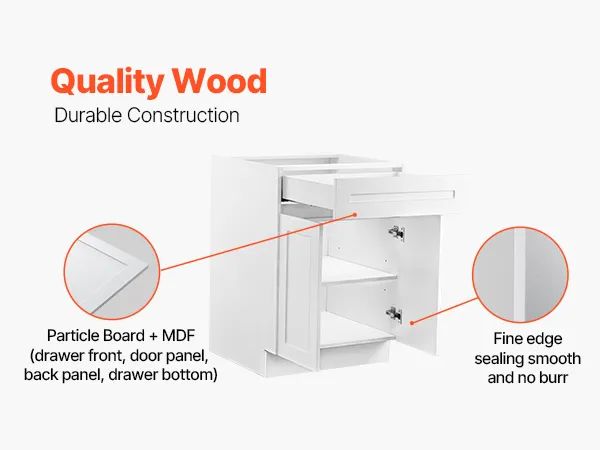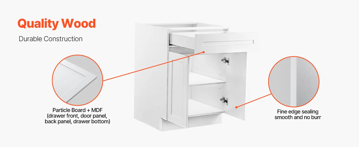 This cabinet is made of wood to last you a long time. The main frame is constructed of sturdy particle board, but the drawer uses MDF for strength. Corner guards keep panels safe while being shipped. With a weight capacity of 44 lbs, you can organize the cabinet with tools, supplies, or other daily items. Its sturdy frame keeps its shape even with frequent use. This cabinet features a soothing style and sturdy structure, making it a good essential shaker cabinet door solution. It works well in busy homes or office spaces.