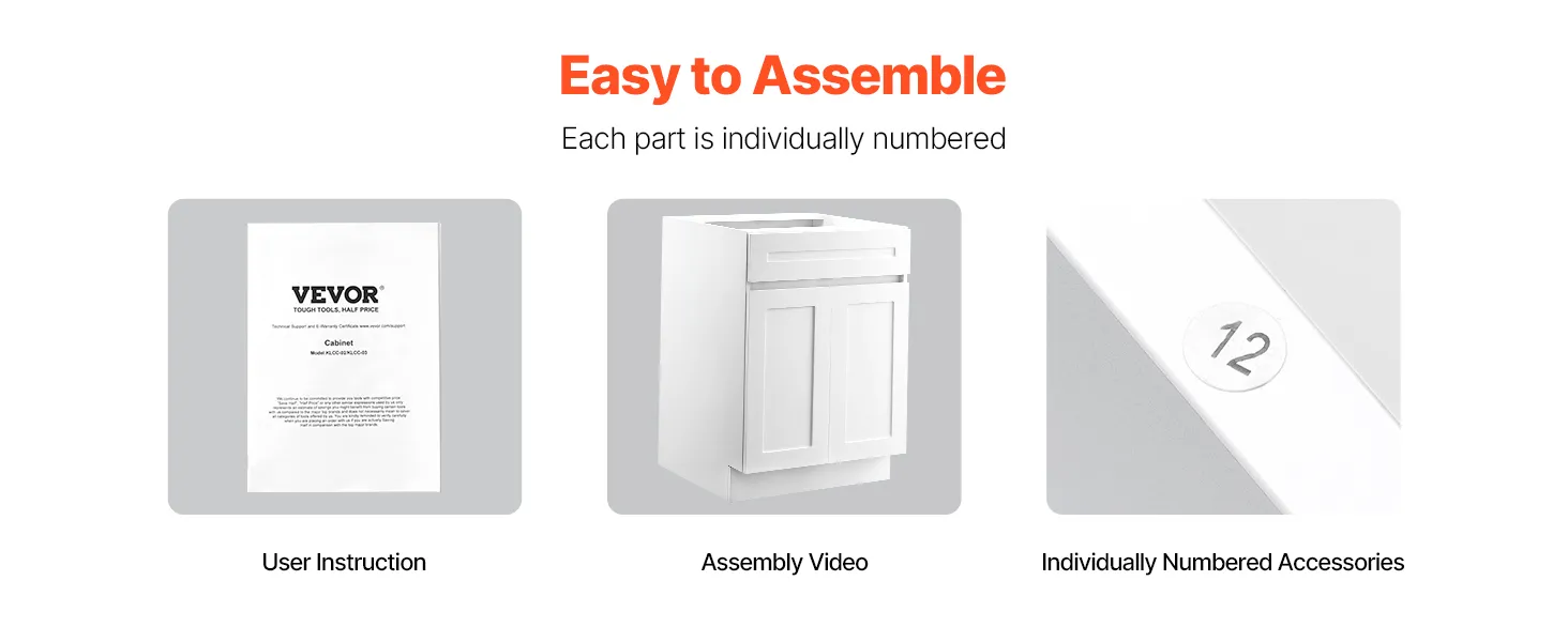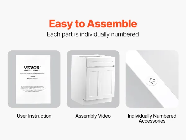 It is simple to assemble thanks to the numbered pieces and instructions. Every piece has an identifying mark so you can build the cabinet. Follow the steps, and the cabinet comes together fast. These hinges allow you to change the directional operation of your door. No special tools are needed beyond basic items. If you want the clean lines of a shaker door cabinet, but prefer not to build from scratch, this setup is for you. When you finish building the cabinet, it stands firm. Thus, you can store all your daily items.