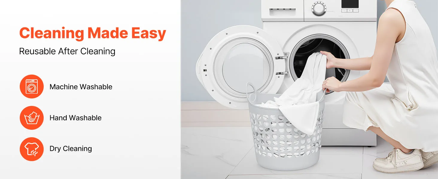 After using one for a party, I washed it in my home washer. It came out looking almost brand new — no major wrinkles, and stains wiped out easily.