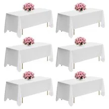 VEVOR White Tablecloths for Rectangle Tables, 6 Pack, 90 x 132 Inches, Reusable and Machine Washable Table Clothes, Wrinkle-Resistant Polyester Fabric Table Covers for Wedding, Party, Banquet