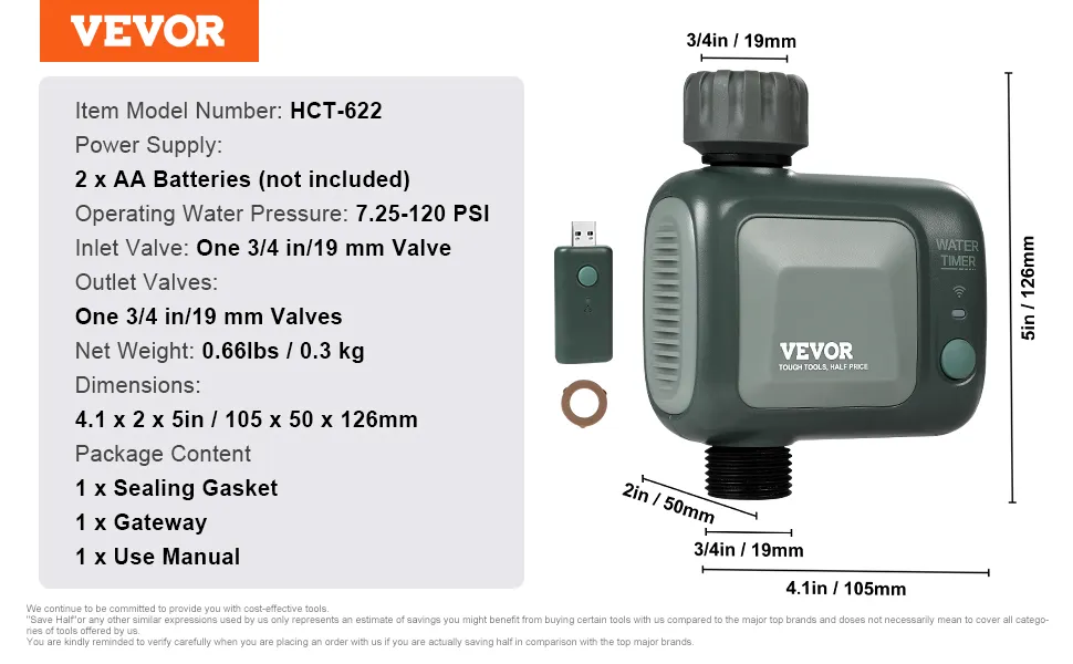 This WiFi sprinkler timer has a durable design with an IPX6 waterproof rating. This ensures it can withstand harsh weather conditions and maintain reliable performance. The timer is built to handle water pressure between 7.25 psi and 120 psi. It’s suitable for various watering needs. Our built-in filter effectively removes sediment and particles. It provides clean water for your plants and prevents clogs. This robust design ensures long-lasting performance and minimal maintenance. The VEVOR yard watering timer remains reliable and efficient whether it rains, sun, or snow. Therefore, this durability makes it an incredibly valuable addition to any yard or garden!
