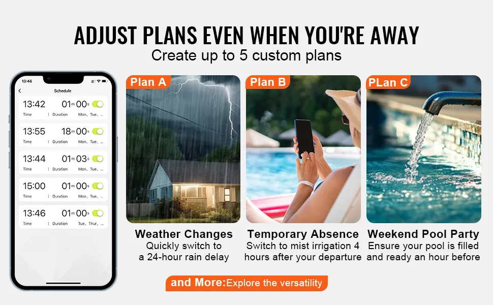 This feature is perfect for those who want a tailored approach to watering. You can set different schedules for different areas of your yard, ensuring each plant gets the hydration it needs. The ability to customize schedule plans also means you can adapt your watering plan to seasonal changes or specific plant requirements. This flexibility ensures optimal plant health and growth. It makes it ideal for gardening enthusiasts.