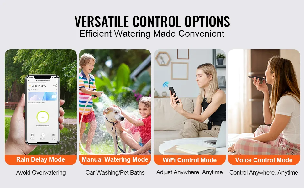 The VEVOR WiFi sprinkler timer includes an easy manual mode. This mode allows you to switch from automatic watering to manual control. It is perfect for tasks like bathing your pets or cleaning your car. You can turn the timer on and off without interrupting any preset automatic watering schedule. This flexibility ensures you can handle various watering needs without any trouble. The ease of switching between modes makes it ideal for those who want a versatile and adaptable water management system. Our feature enhances the overall convenience and usability of the VEVOR WiFi sprinkler timer.