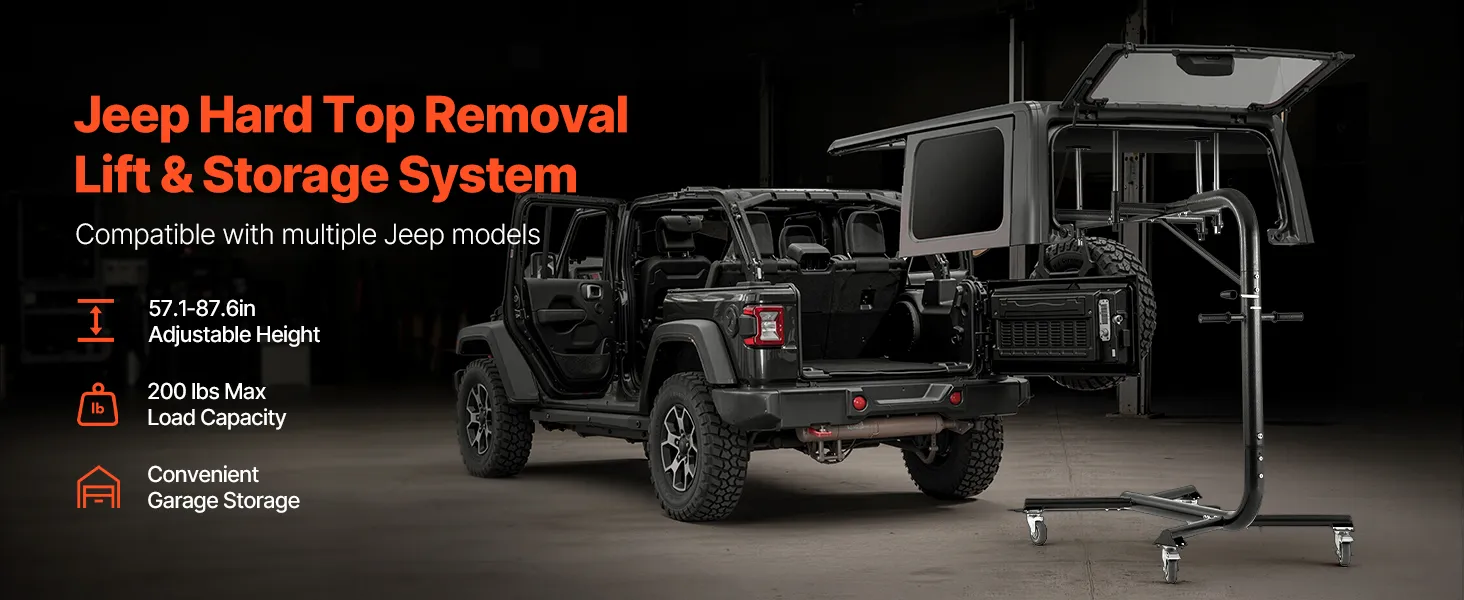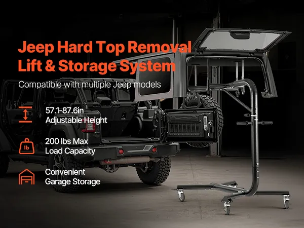 VEVOR Hard Top Remover Lift, 200 lbs, Jeep Hardtop Removal and Storage System, Easy One-Person Operation, Compatible with Jeep Wranglers 2 & 4 Door YJ, TJ, JK, JL & 4XE and Ford Bronco 4 Door & 6 Gen+