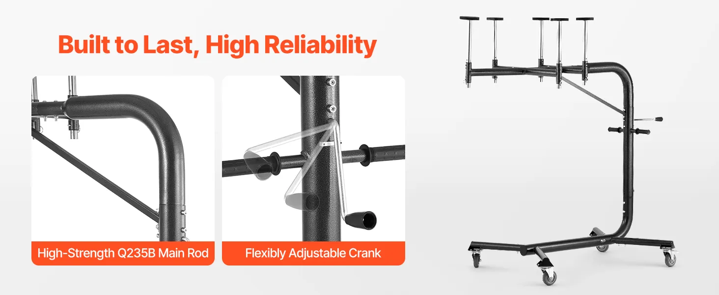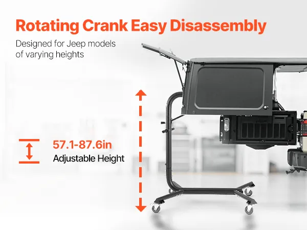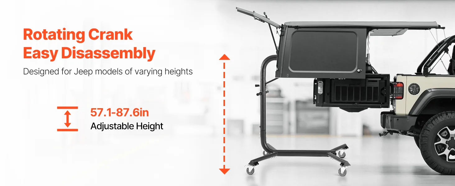 Adjustable Height: The support height can be adjusted from 57.1 to 87.6 inches (1450 to 2225 mm). This hard top removal and storage system ensures stability during use, bringing you the flexibility to adapt to different vehicle heights and usage requirements