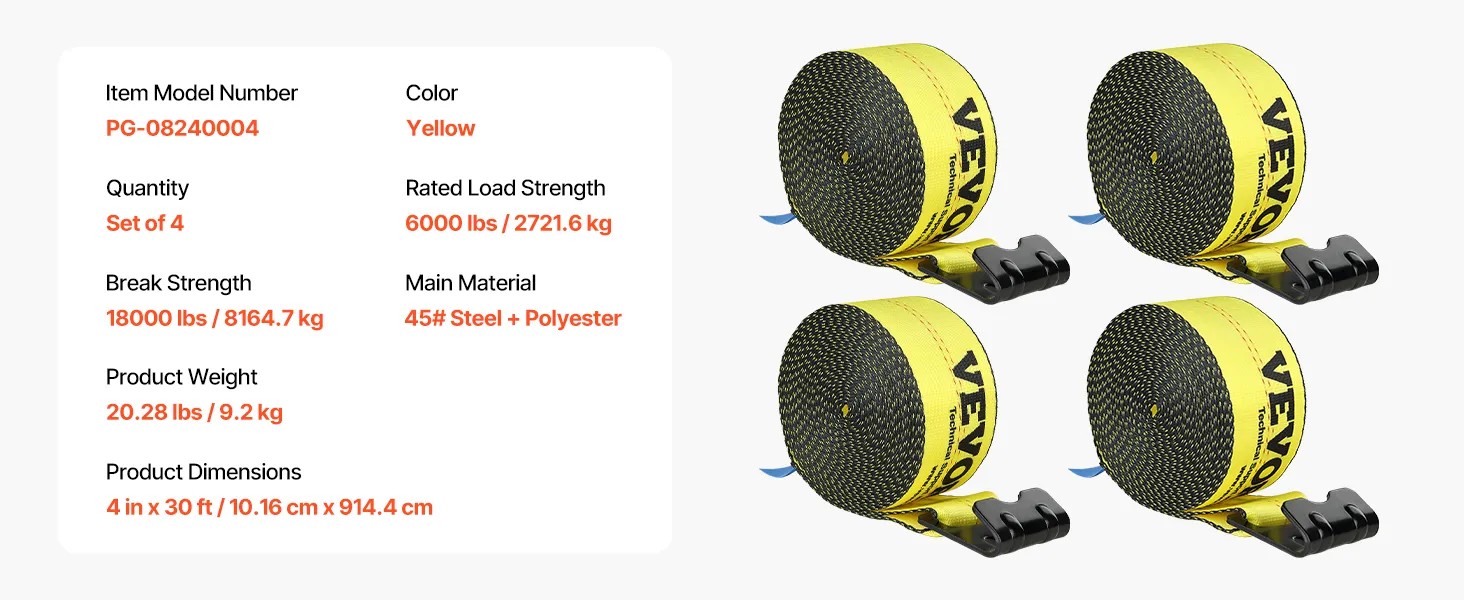 This is a winch strap that works for truck drivers and flatbed tie-downs. Their 30-foot length and 4-inch width provide enough flexibility to secure various loads. The strong construction ensures they can handle heavy cargo. It makes them ideal for trucking needs, especially in trucking. Carbon structural steel adds to the reliability of flat hooks. These straps also work well for farms and rescues, offering versatility. Their bright yellow color enhances visibility, making them easy to spot and use. Choose VEVOR winches because they are versatile and reliable for securing cargo!