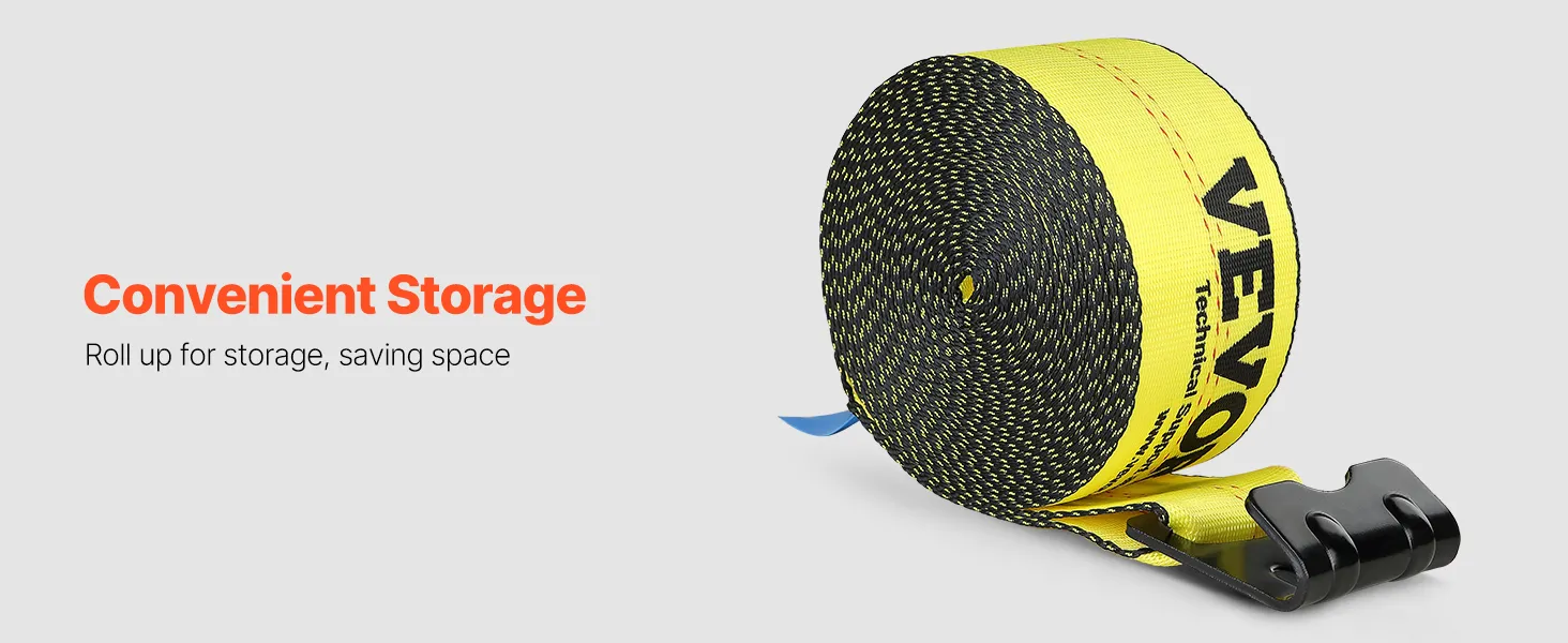 This is why these VEVOR winch straps come with easy-to-use flat hook tie-downs. The flat hooks are made from carbon structural steel. It ensures a secure hold. They are simple to attach and detach, making the strapping process efficient. A bright yellow color adds visibility. These straps are simple to spot and use. These straps are perfect for securing heavy loads. They provide peace of mind during transportation. Their versatility makes them ideal for truck drivers, farms, and rescues! Choose VEVOR winch strap options for their ease of use and reliable performance.