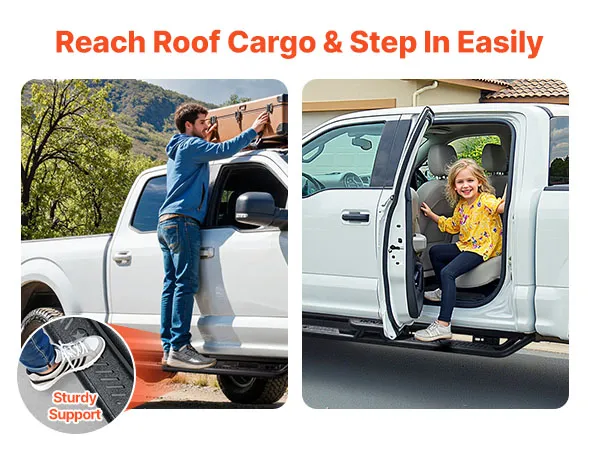 Easily load or retrieve roof cargo with these side steps, ensuring safe and convenient entry for family members. Move heavy items with stable, shake-free support.