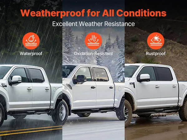 Built to handle harsh conditions, these running boards & steps are waterproof, rustproof, and corrosion-resistant, staying sturdy in rain, snow, or muddy roads.