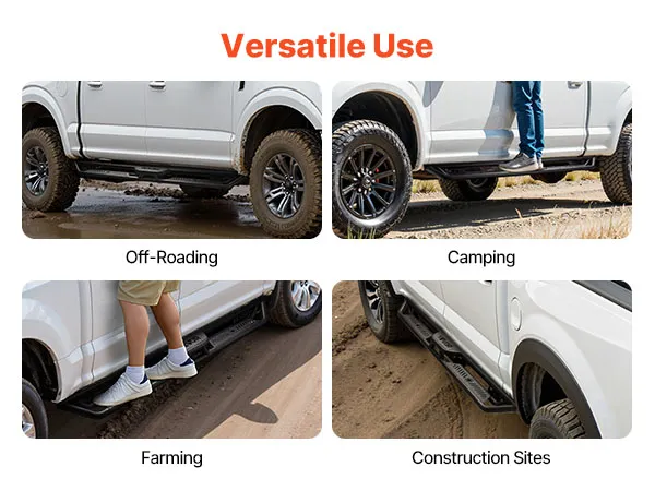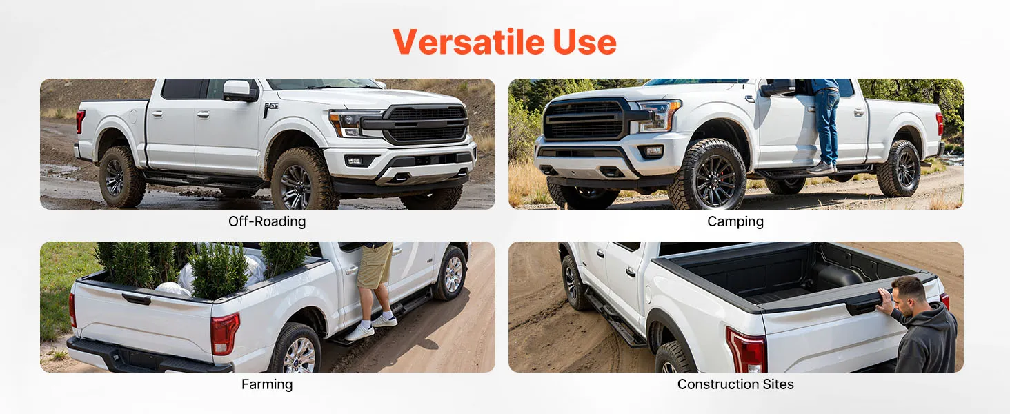 Non-Slip Design: The step bars feature a non-slip surface that boosts traction, making it harder to slip. They reduce the risk of falls in wet or icy conditions and are great for off-roading, camping, farm work, and construction sites