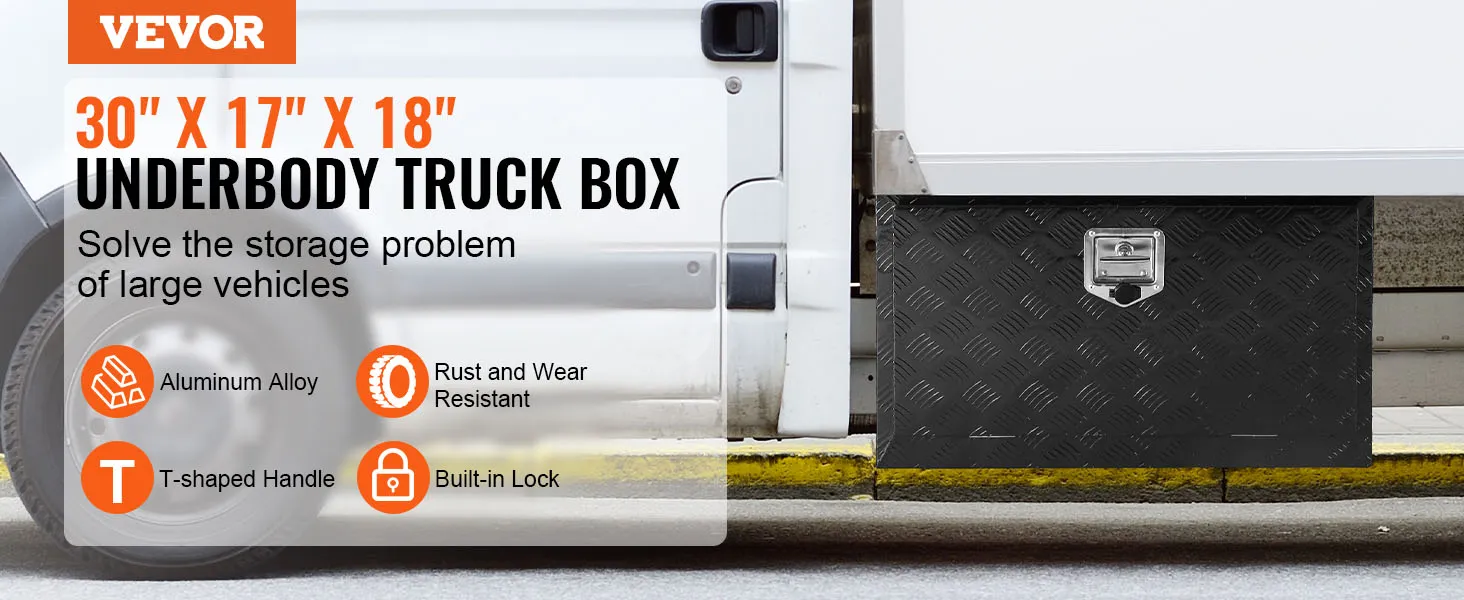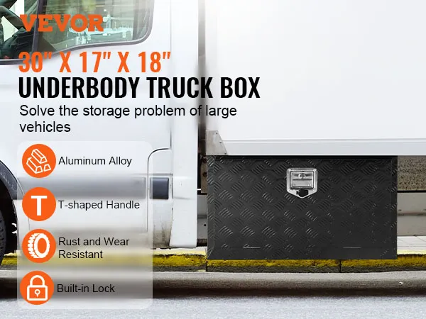 ¿Están sus artículos organizados y son de fácil acceso? La caja de herramientas para debajo de la carrocería de VEVOR amplía el espacio de almacenamiento de su camión, remolque u otros vehículos grandes. Puede almacenar todas sus necesidades, desde herramientas de mantenimiento hasta equipo de campamento, en esta caja para camión y mantener todo organizado.