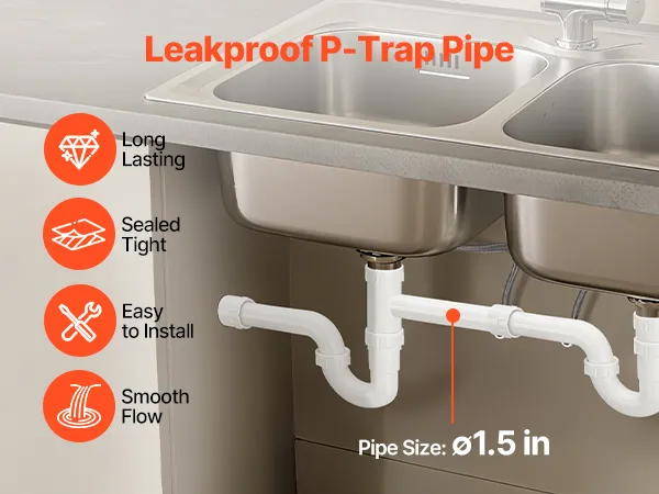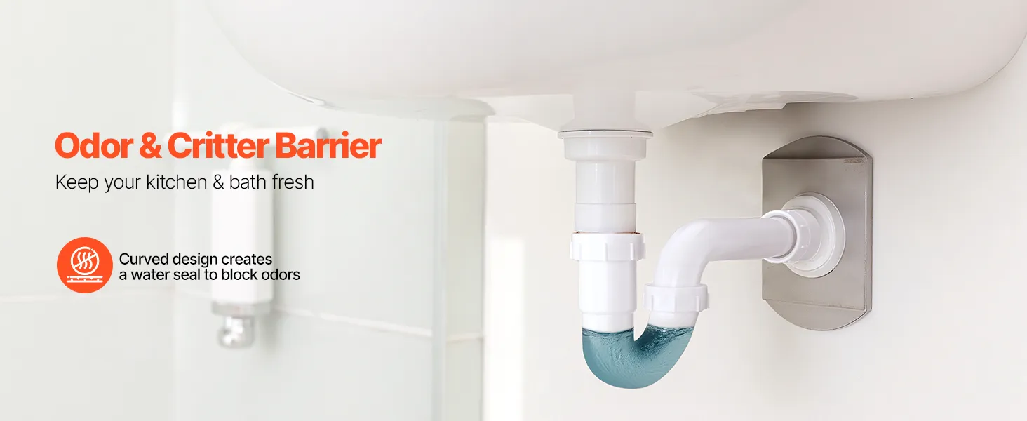 The bathroom sink p trap drain kit forms a water seal blocking odors and deterring flies and other critters from entering indoors through the pipes. It keeps the living conditions clean.
