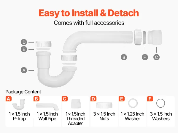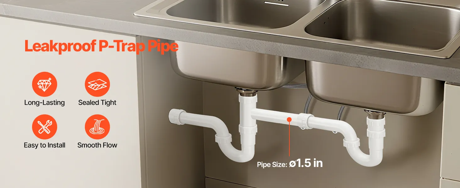 This 1.5 in p trap kit provides sufficient drainage capacity. It is suitable for most household kitchen sinks, bathroom basins, and other common applications, ensuring fast and efficient water flow.