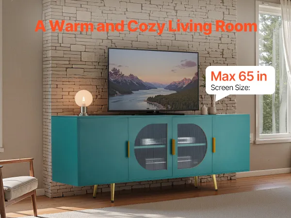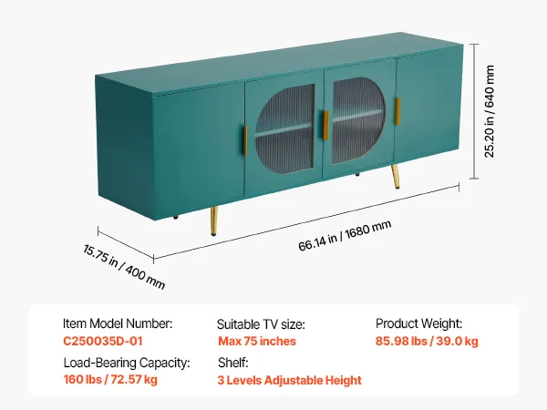 The entertainment center's clean, uncomplicated style complements Scandinavian, modern, or contemporary furnishings. It is a striking item that will enhance any space thanks to its sleek lines, gold metal legs, and chic green color. You can place it in a living room, bedroom, study, or foyer because of its understated style, which complements other items rather than dominating center stage.