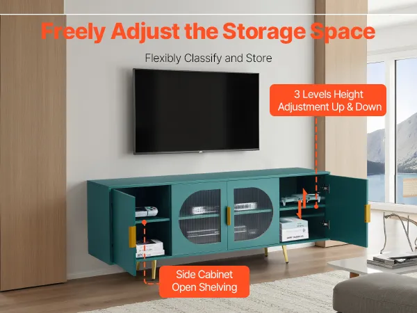 Users can personalize their living environment by adding more decorations, speakers, model collections, or plants, thanks to the large countertop. Families who require structured storage that can adapt over time will find the TV cabinet storage to be quite helpful due to its adaptable internal layout. You can keep all your entertainment equipment neatly organized with the adjustable shelves in your study, living room, bedroom, or foyer.