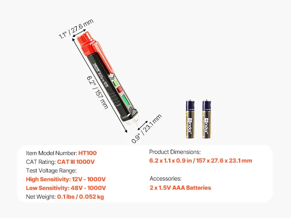 Adjusting the device to the sensitivity is also one of its most essential characteristics. It can measure a voltage range of 12V-1000V in low mode, making it suitable for smaller electronic circuits or low-voltage devices. It operates in high mode, identifying 48V to 1000V, ideal for larger electrical systems, such as power lines or heavy-duty work.