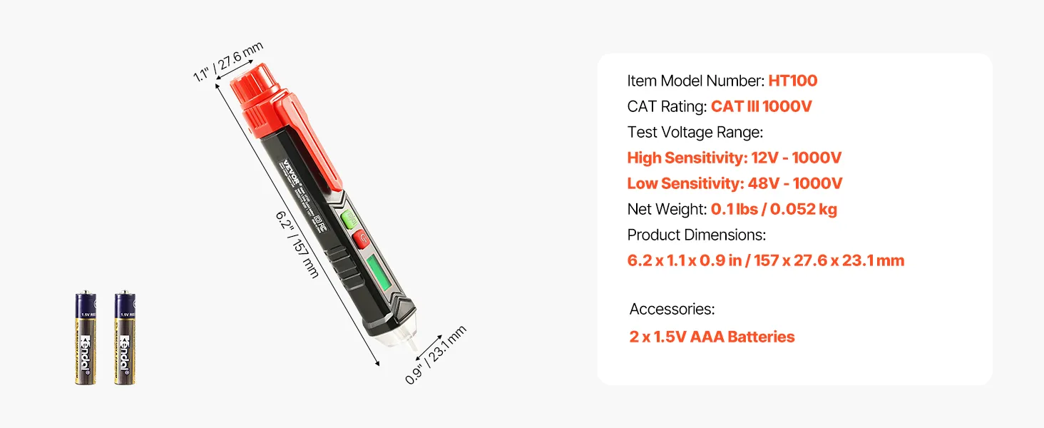 Designed for everyday convenience, the tester’s compact size fits easily in your pocket. It can be easily fitted into a pocket, toolbox, or work belt due to its compact size of 6.2 x 1.1 x 0.9 inches. This is made easy by its narrow and streamlined form, which makes it easy to carry across various work sites. It is nearly lightweight at only 0.1 lbs.