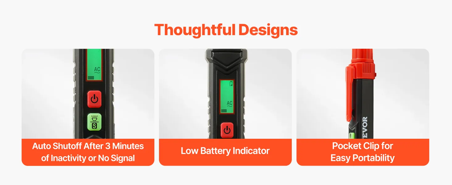 The two alarms can particularly respond well in noisy or dark working conditions. An LED can actually be challenging to see, but the sound alarm provides the required alert. However, if the sound isn’t heard, the color feedback ensures visibility. This non contact voltage tester reduces the risk of errors and increases safety during electrical inspections by utilizing both techniques.