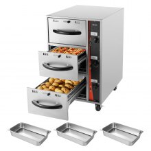 Calentador de cajones eléctrico comercial VEVOR, calentador de alimentos de acero inoxidable de tres cajones, gabinete independiente con cajón calentador estándar, amplio rango de temperatura de 29 °C a 85 °C, para restaurantes, bufés de hotel y panaderías.